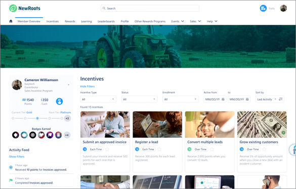 Partners will be able to view a list of the last activities performed like incentive completion, redemption, course completion, module passed, promotion to a new tier and reward received.